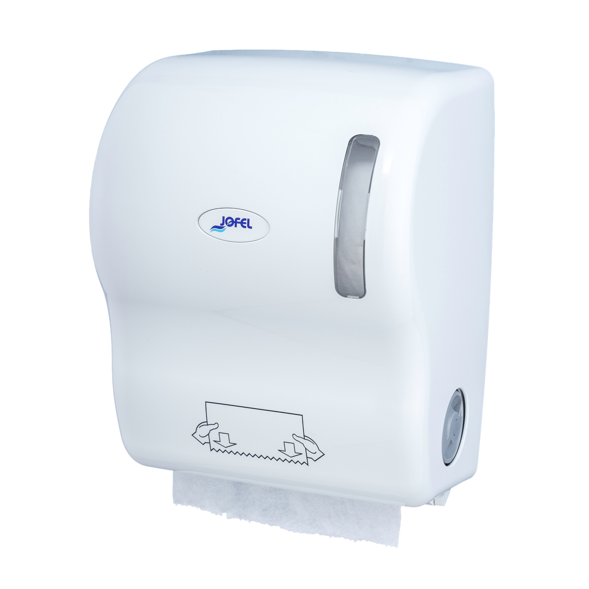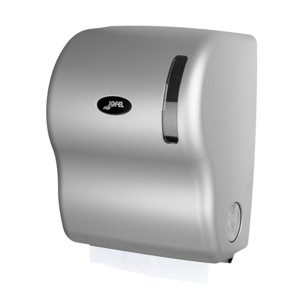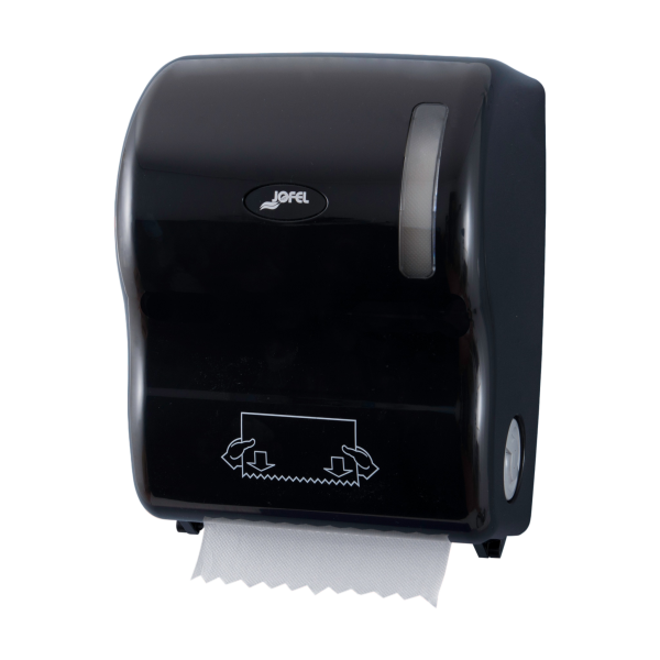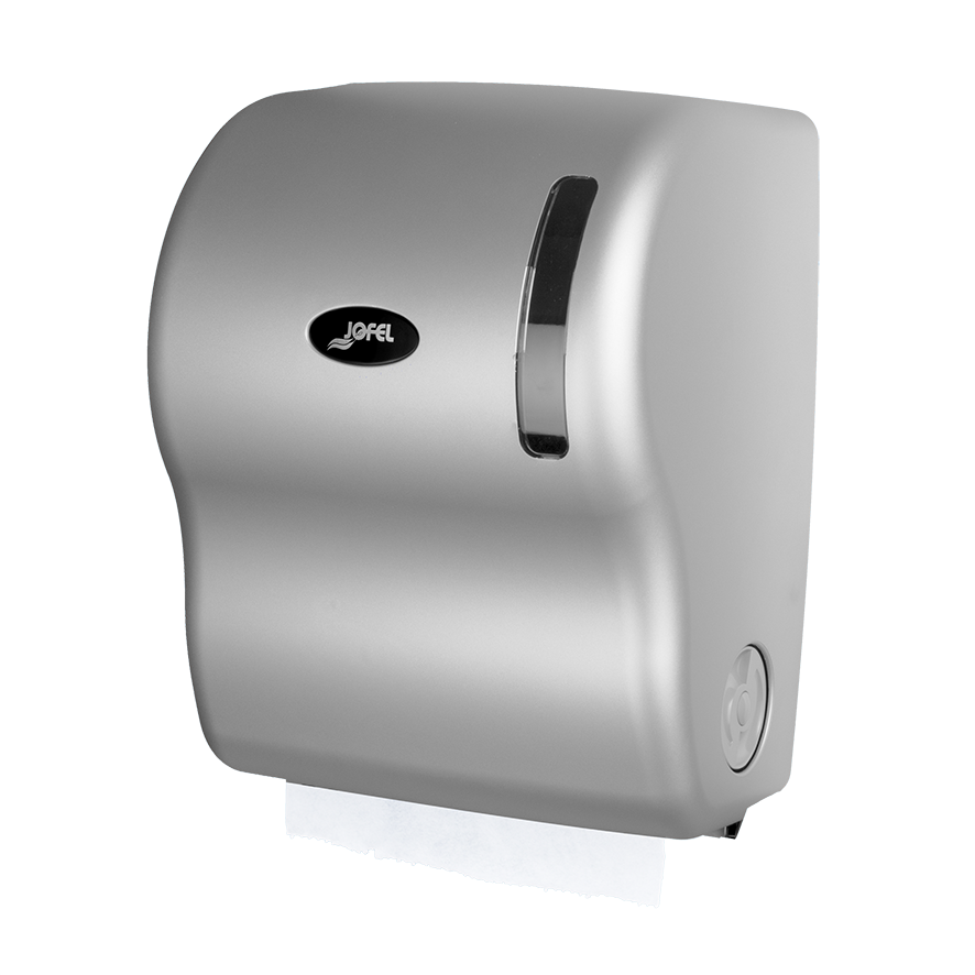 Distributeur d’essuie-mains auto-coupant pour toilettes privés et publiques.